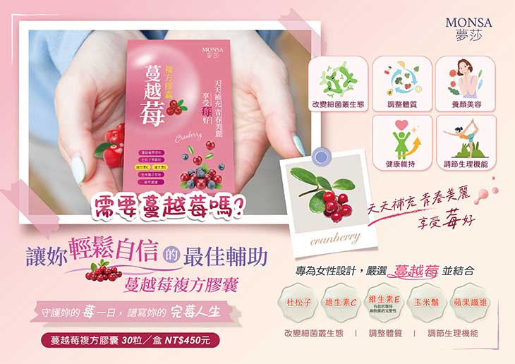 產品說明:需要蔓越莓嗎? 讓妳輕鬆自信的最佳輔助〜 蔓越莓複方膠囊