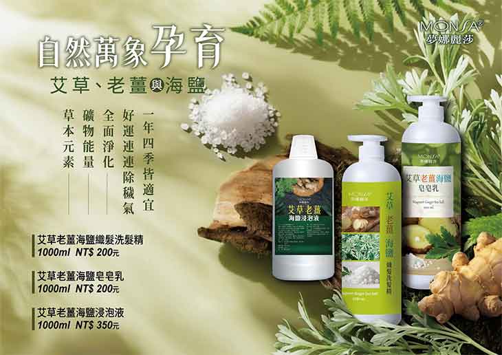 自然萬象孕育艾草、老薑與海鹽草本元素、礦物能量,全面淨化好運連連除穢氣,一年四季皆適宜除異味,消除髒污,洗淨一切不潔的東西