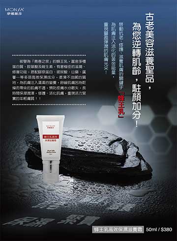 全成分:Water、Caprylic/Capric Triglyceride、Cyclomethicone、Butylene Glycol、Petrolatum、Steareth-2、Steareth-21、Cetyl Alcohol、Phenoxyethanol、1,2-Hexanediol、Royal Jelly、DioscoreaVillosa Root Extract、Collagen、Aloe Barbadensis Leaf Extract、Sodium Hyaluronate、Chlorphenesin、Carbomer、Triethanolamine、Fragrance